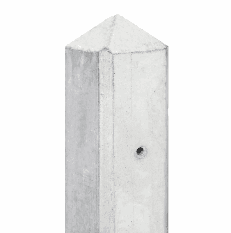 3. Klassieke Diamantkop De paal is aan de bovenzijde afgewerkt in een puntvorm (diamantkop). Dit oogt niet alleen chiquer dan een vlakke of ronde kop, het is ook functioneel. Regenwater loopt direct van de punt af, waardoor er geen water op de paal blijft staan.